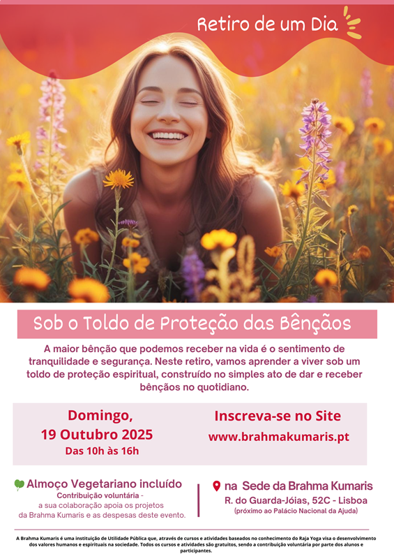 Contribuição voluntária – a sua colaboração apoia os projetos da Brahma Kumaris e as despesas deste retiro.